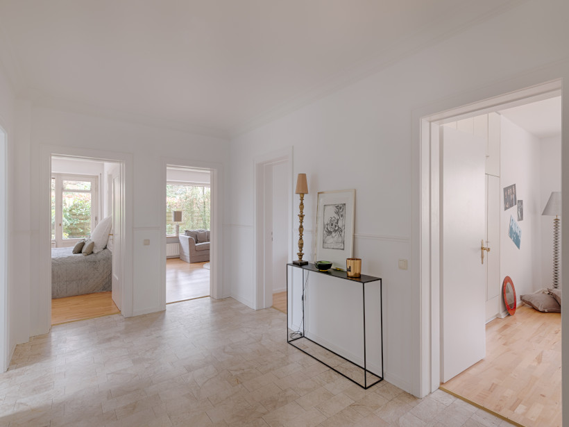 Diese sehr charmante, aber renovierungsbedürftige Erdgeschosswohnung, liegt in einer der beliebtesten Wohngegenden der Elbvororte und erfüllt auf ca. 131 m² Wohnfläche alles, was man sich nur wünschen kann. Zwei herrliche Terrassen in Süd/West Ausrichtung bieten durch wunderschöne Rhododendren und Hecken viel Sichtschutz und somit eine angenehme Privatsphäre.