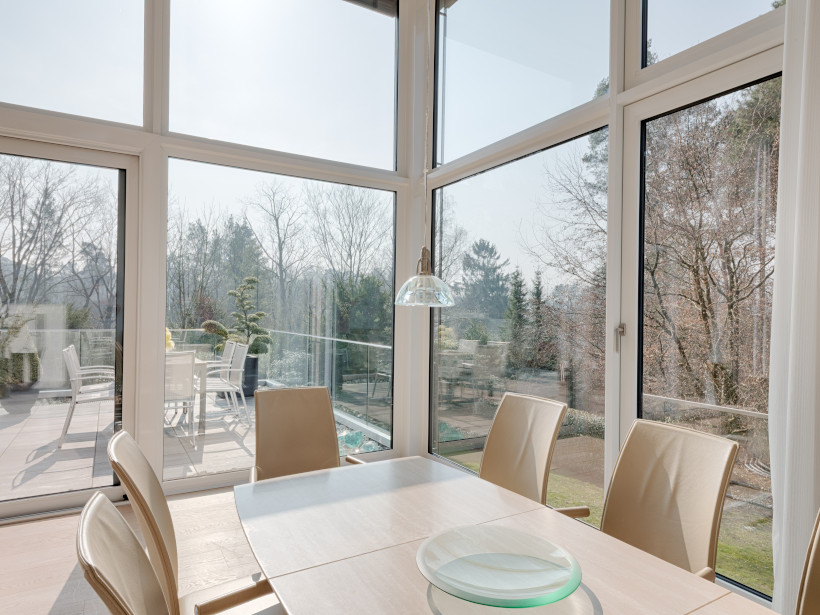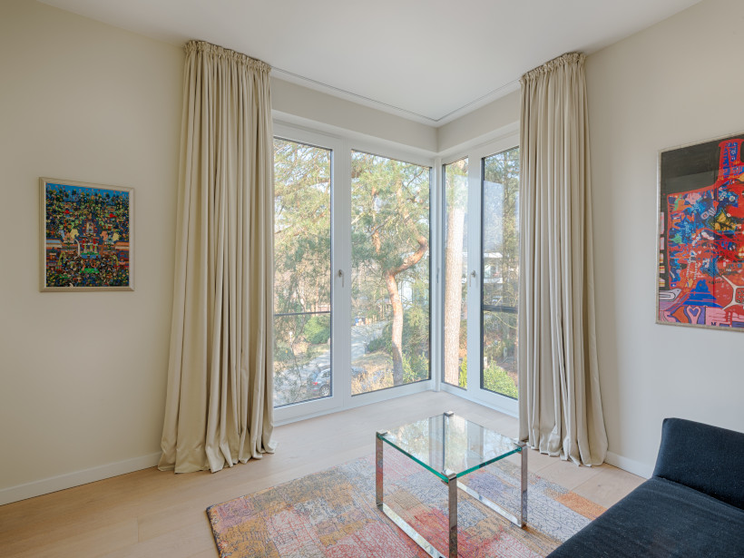 - Gardinen sind teilweise elektrisch zu betätigen, die Fensterflächen im Wohn-/ Essbereich sind mit Außenraffstores ausgestattet