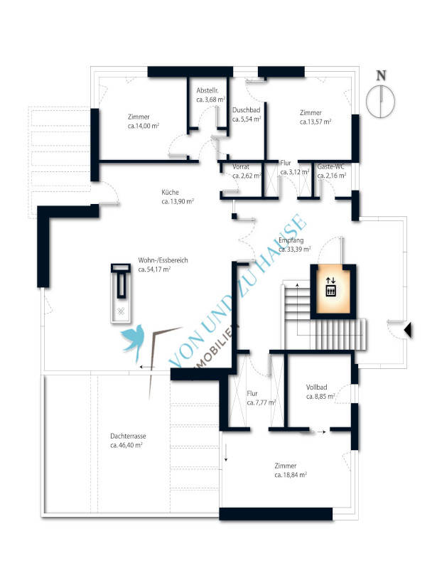 - mit dem Fahrstuhl fahren Sie direkt in dieses einzigartige Penthouse und werden von lichtdurchfluteter Imposanz und Eleganz begrüßt