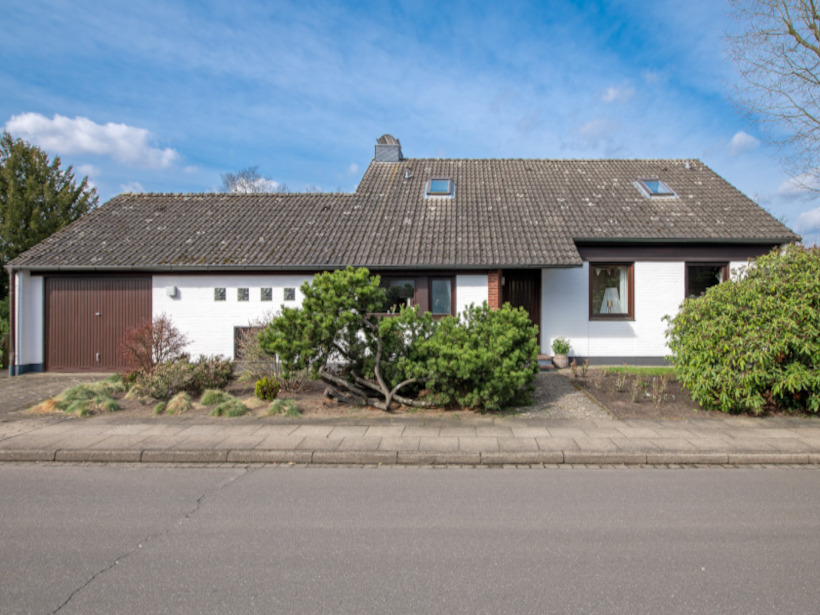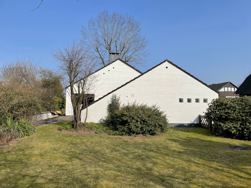 Dieses sehr charmante Architektenhaus wurde im Jahr 1965 in solider Massivbauweise mit Teilkeller und Garage errichtet und befindet sich auf einem ca. 953 m² großen, voll erschlossenen sowie liebevoll angelegten Grundstück. Die weiße Fassade des Hauses bildet einen attraktiven Kontrast zu den rotbraunen Klinkerelementen, der dunkelbraunen Holzverschalung sowie den Holzfenstern mit Doppelverglasung. Zusammen mit dem anthrazitfarbenen Satteldach entsteht ein harmonisches und zugleich zeitloses Gesamtbild.