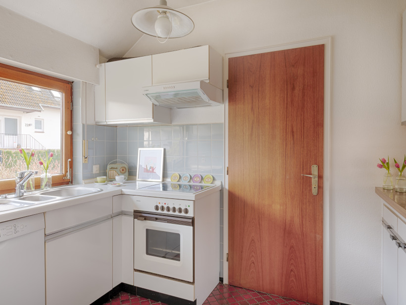 - die ca. 8 m² große Küche überzeugt mit einer großzügigen Holz-Durchreiche zum Essbereich, die sich mühelos öffnen lässt und ein luftiges, offenes Raumgefühl schafft. Ergänzt wird dieser Bereich durch einen praktisch angrenzenden Hauswirtschafts- und Heizungsraum im Teilkeller.